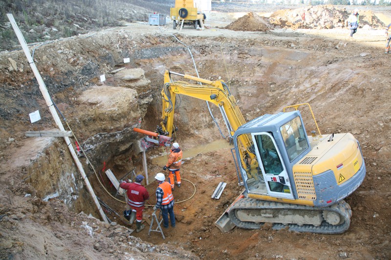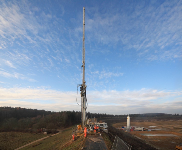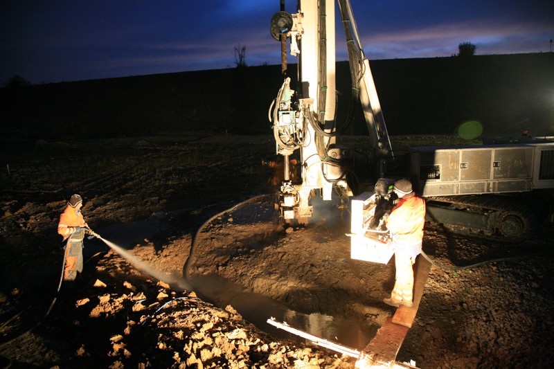 Für die Untergrundsanierung eines Speicherbeckens war daher die Anwendbarkeit des Düsenstrahlverfahrens zu erproben. In einem Feldversuch wurden Probesäulen hergestellt, vermessen und teilweise freigelegt.